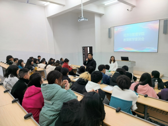 为了提高数字经济管理学院未来的发展,于2023年11月14日下午两点三十至三点三十,在数字经济管理学院躬行楼101教室召开了一场座谈会。参加本次活动的人员包括各科老师和各班学生代表。