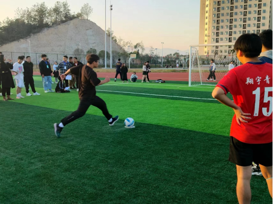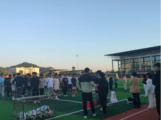 为了推进校园体育工作的深入开展,培养学生的运动兴趣,铸造团结协作和敢于拼搏的精神,我校于2023年11月21日组织开展了一场别具意义的校园体育节“足球比赛”。