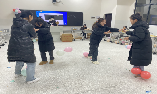 接下来是踩气球小游戏,在现场可以感受到激烈的气氛。每个人都全力以赴地踩对方的气球,让对手没有任何逃脱的机会,玩得不亦乐乎。