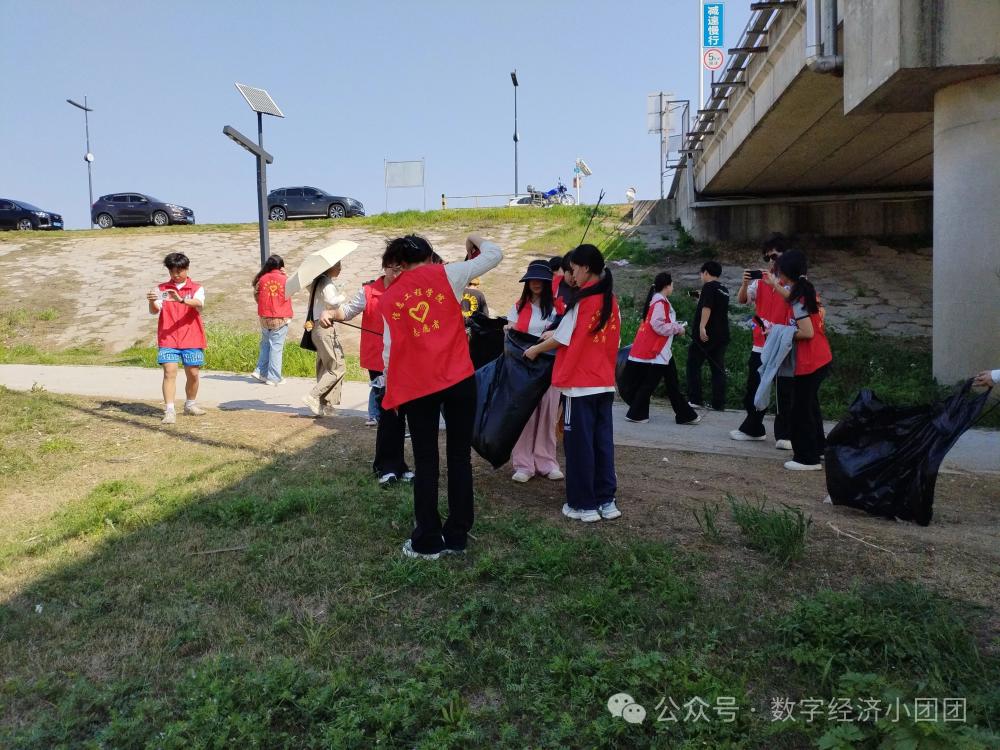 2025年3月25日下午13:30,数字经济管理学院共计10名入团积极分子代表以脚步丈量责任,用行动践行初心,徒步前往长江沿岸开展"守护一江碧水"清滩卫生志愿活动。这场春日里的"绿色行动",既是青年学子对生态文明建设的生动实践,更是新时代青年责任与担当的深刻诠释。