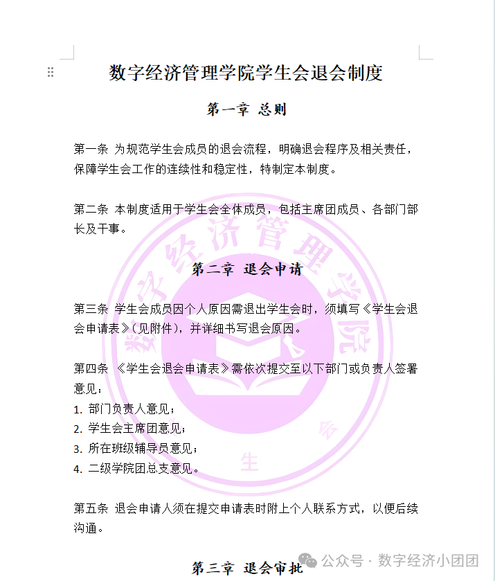 为规范学生会成员的退会流程,明确退会程序及相关责任,保障学生会工作的连续性和稳定性。会议表决通过《数字经济管理学院学生会退会制度》,明确退会申请流程、退会审批、退会交接、退会后续、非正常退会的处理办法等。实现“进退有序、责任闭环”,为学生会高效运转提供制度保障。